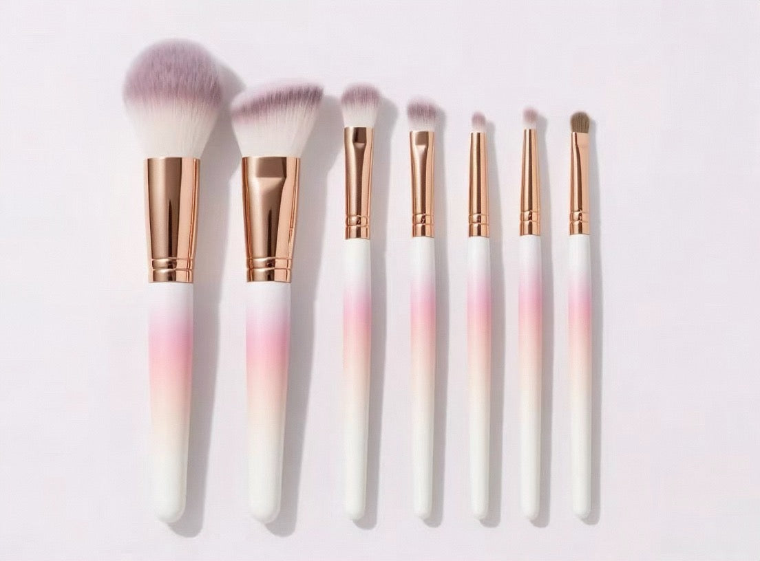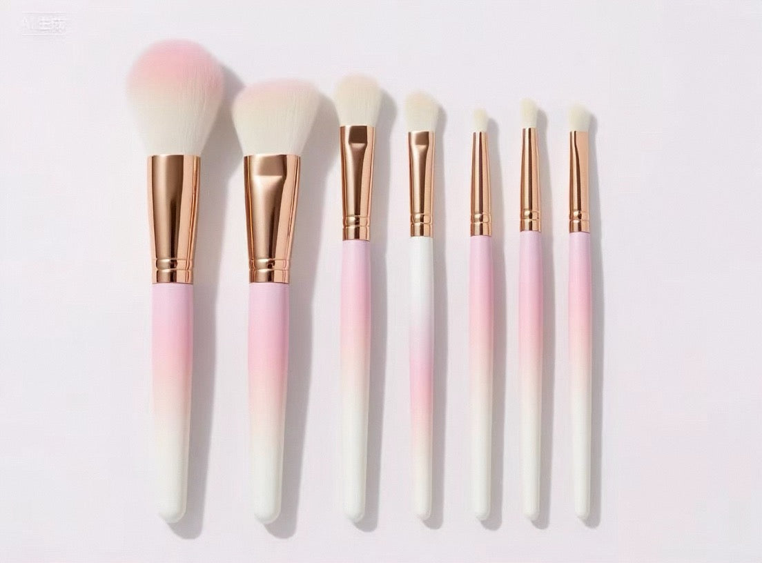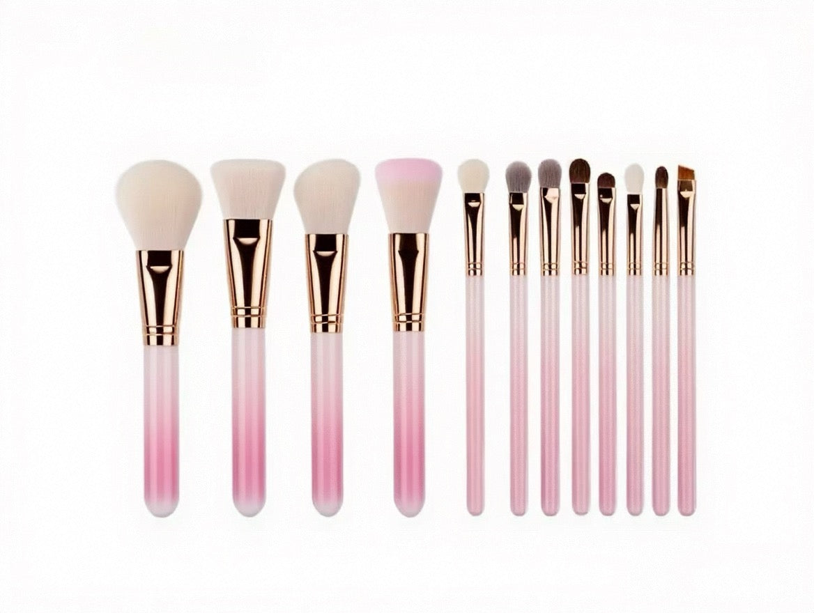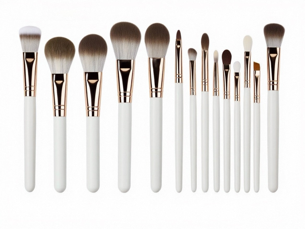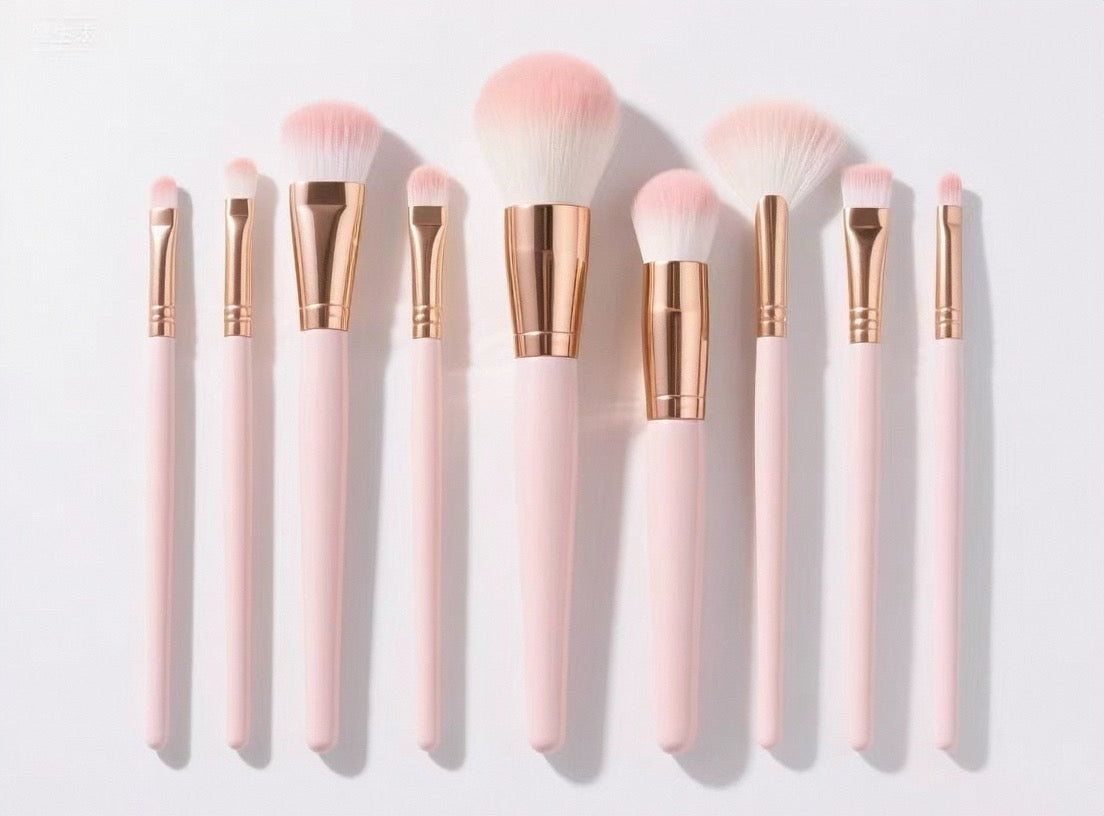 La série ROSÉ est conçue pour un maquillage élégant en or rose, avec des manches en métal or rose et des poils rose-blanc dégradés.