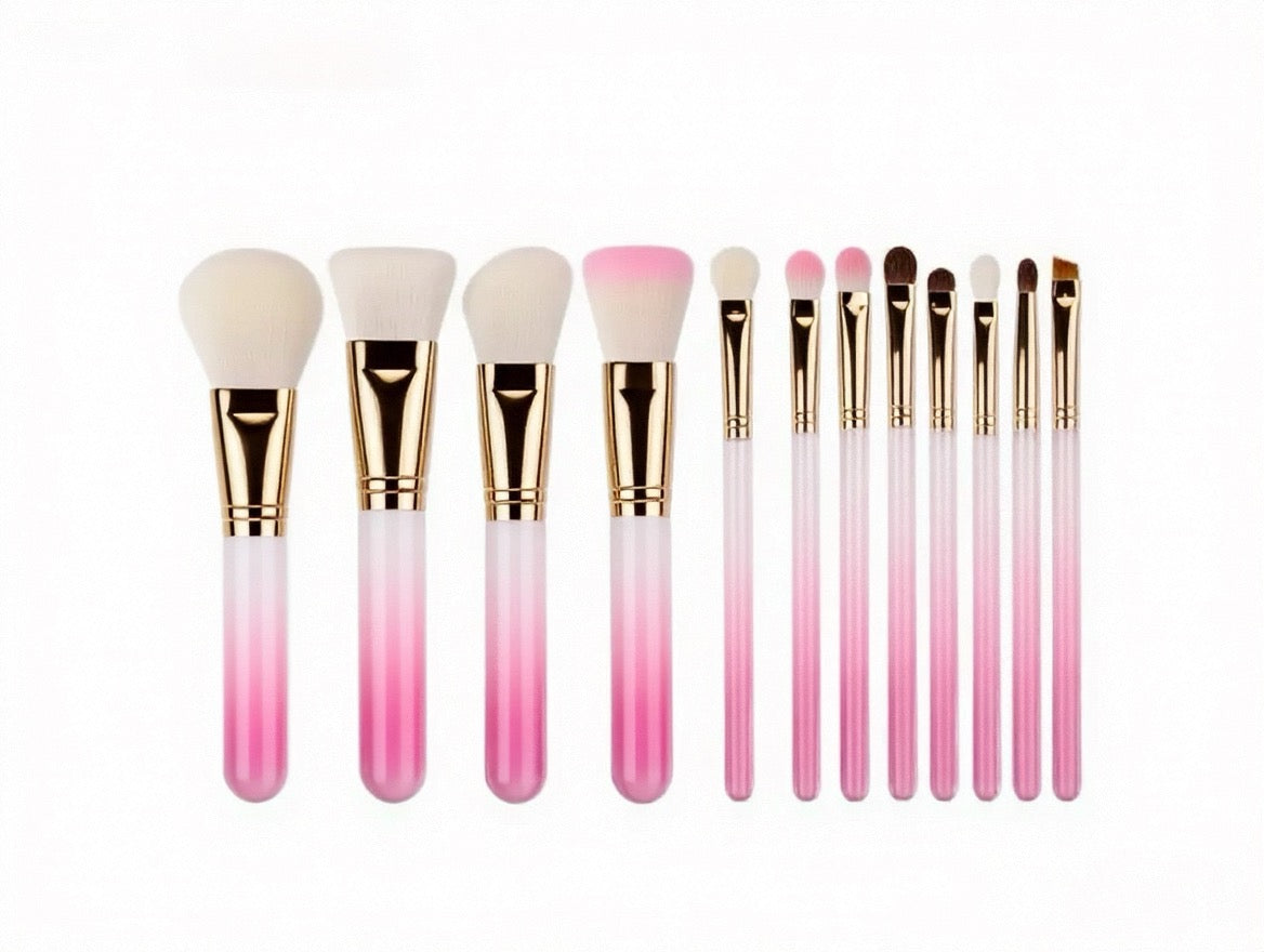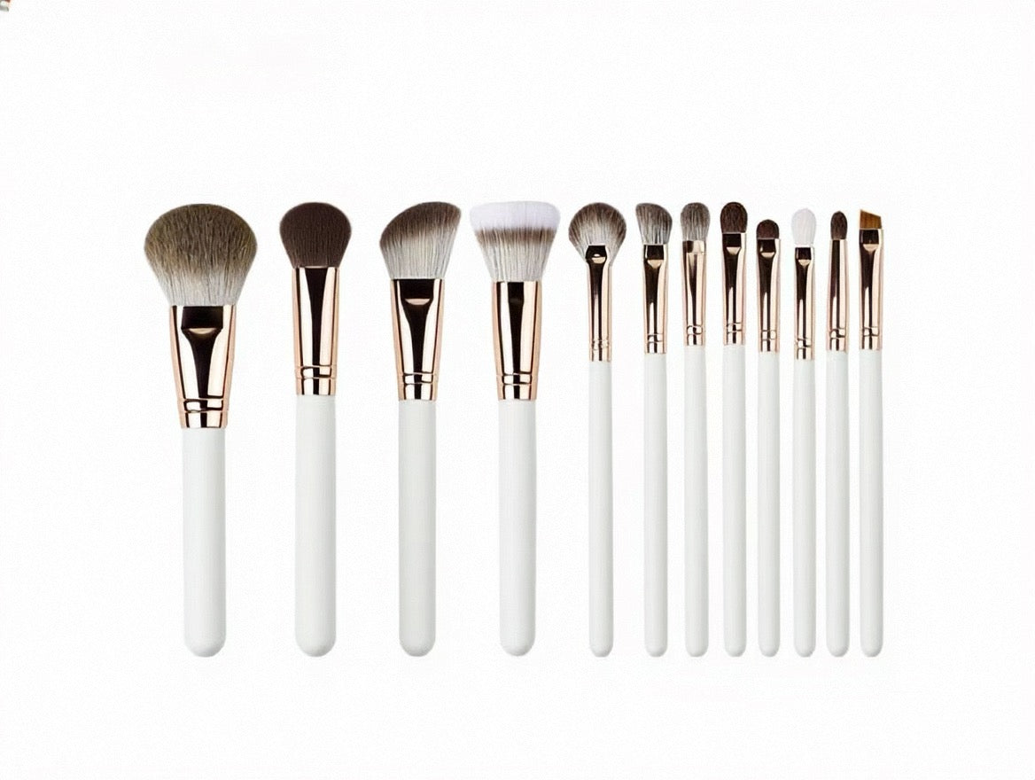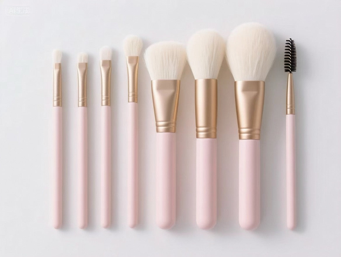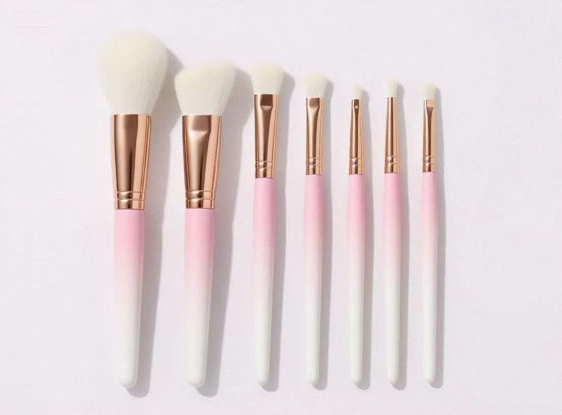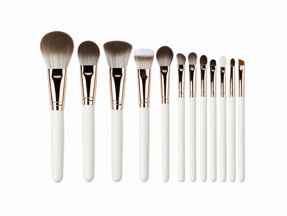 La série ROSÉ est conçue pour un maquillage élégant en or rose, avec des manches en métal or rose et des poils rose-blanc dégradés.