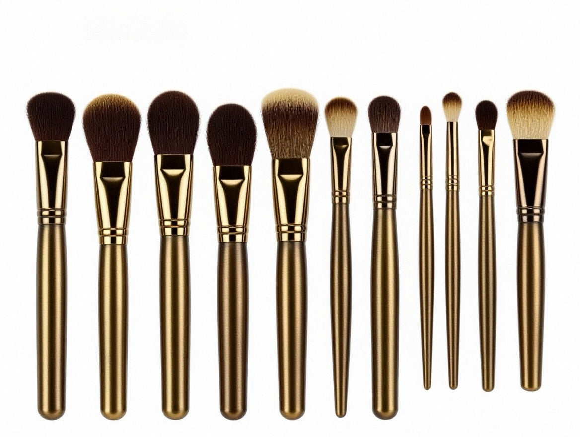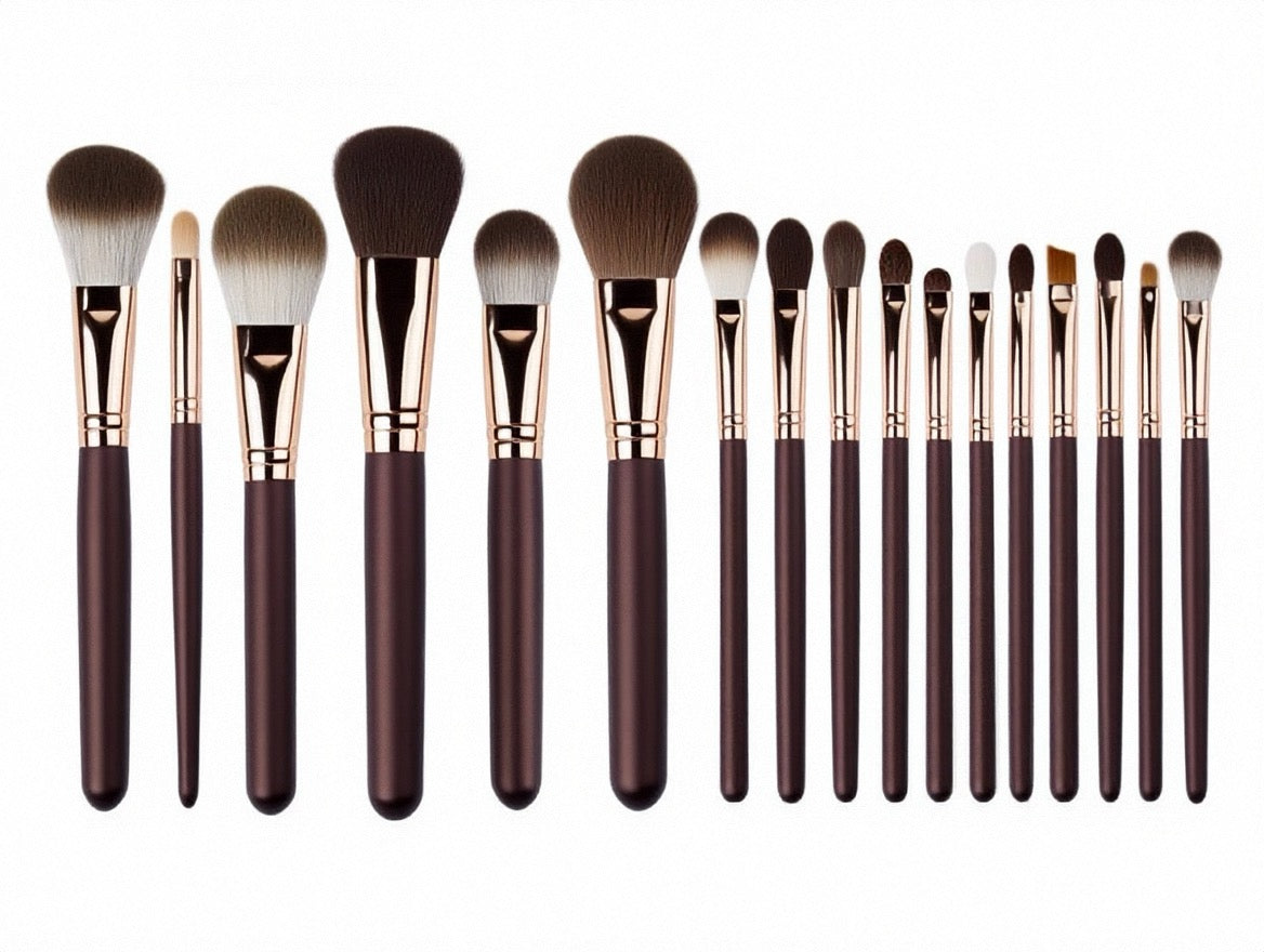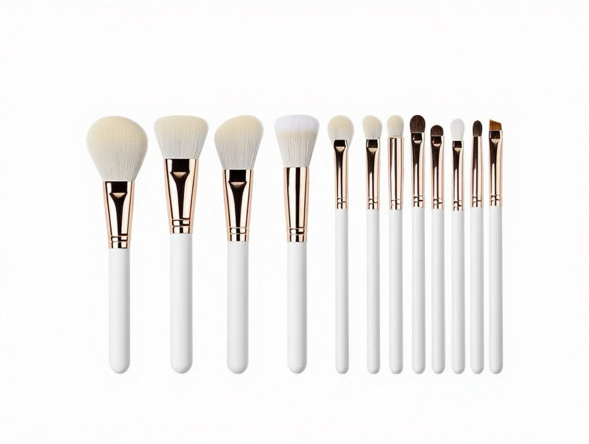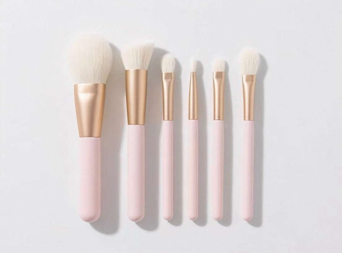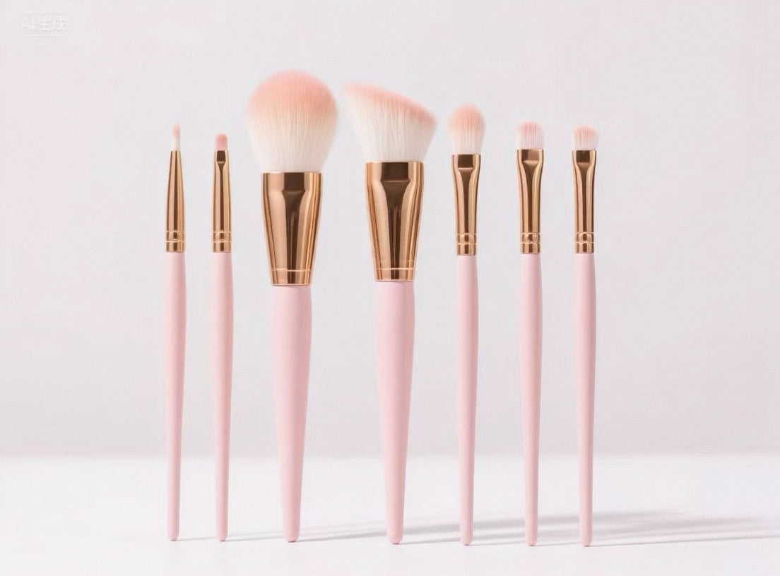 La série ROSÉ est conçue pour un maquillage élégant en or rose, avec des manches en métal or rose et des poils rose-blanc dégradés.